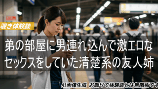 弟の部屋に男連れ込んで激エロなセックスをしていた清楚系の友人姉