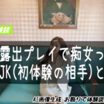 「これなんかも・・・」と見せてくれたのは、どこかの海岸付近での露出プレイ。全裸で恵体丸出しのアヤカがピースサインしてるんです。他にも道路の真ん中でしゃがんで放尿してる姿もある。