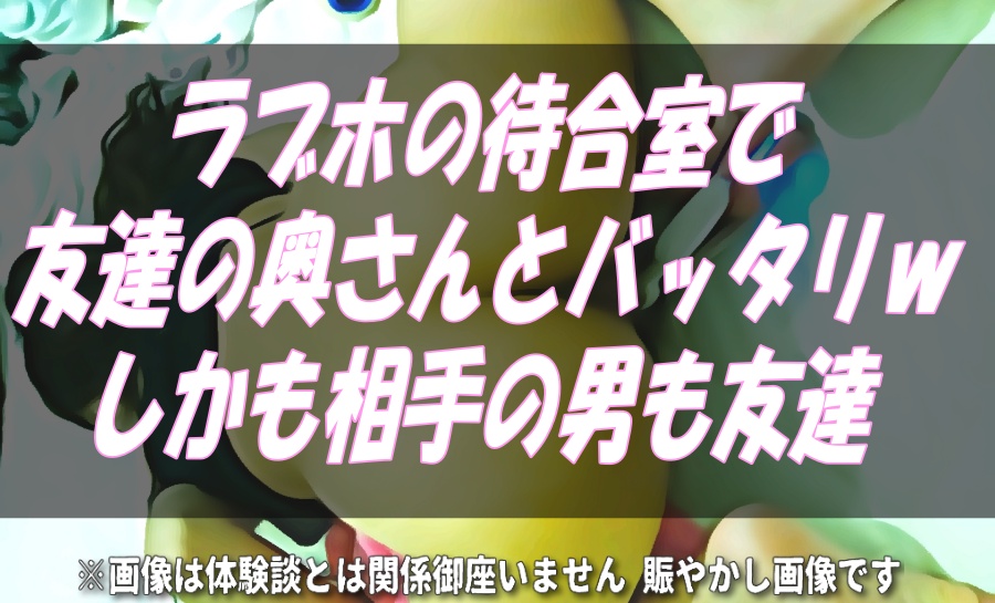 場所は東京都の山の方。やっと「もう少しで空きます」表示がある部屋があり待機することに。そこで初めてラブホ内にある待機室に入った。暗い部屋でセパレートした感じだったんだが、さすがに面と向かえば顔がわかる。マスクをしていても、普段から会ってる人間なら確実に分かる。